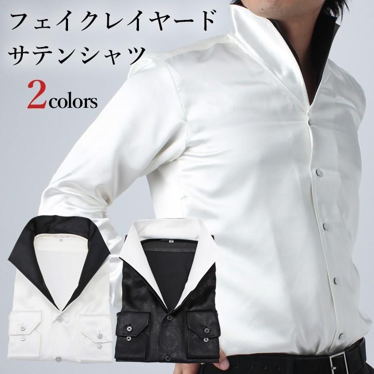 上質サテン調 ドレスシャツ メンズ 紳士 ペイズリー ブライダル 黒 ブラック 白 ホワイト サテン シャツ パーティー 衣装 フェイクレイヤード 2枚襟 送料無料 Item トレンドスタンダード 通販 Yahoo ショッピング